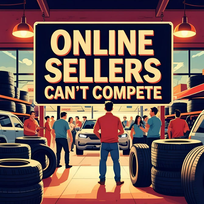 They don't offer free rotations, and you'll still have to pay extra to have your tires installed at a shop. When you get a flat? Most online sellers give you a partial refund at best - no real support, no service.